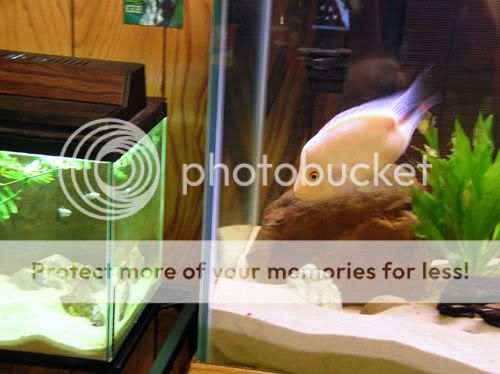Mmmm... yummy bettas. She spends large portions of her day "admiring" them