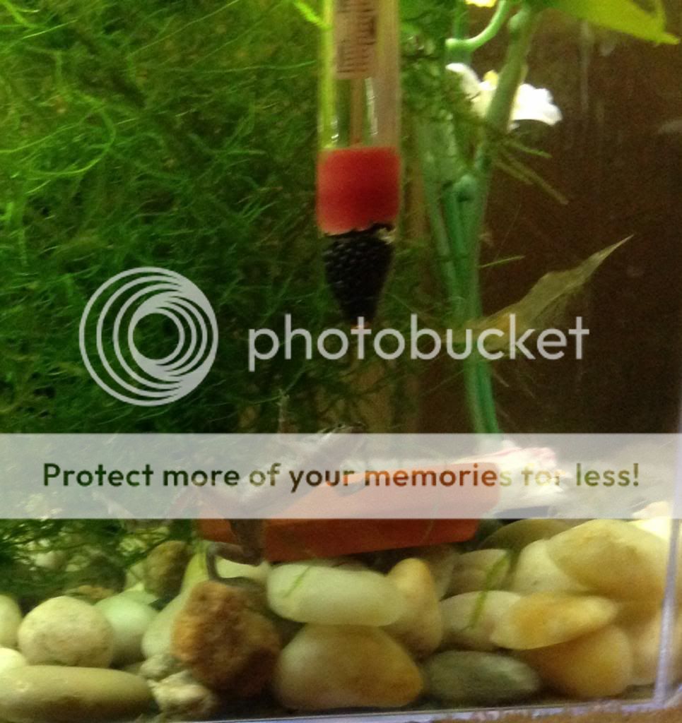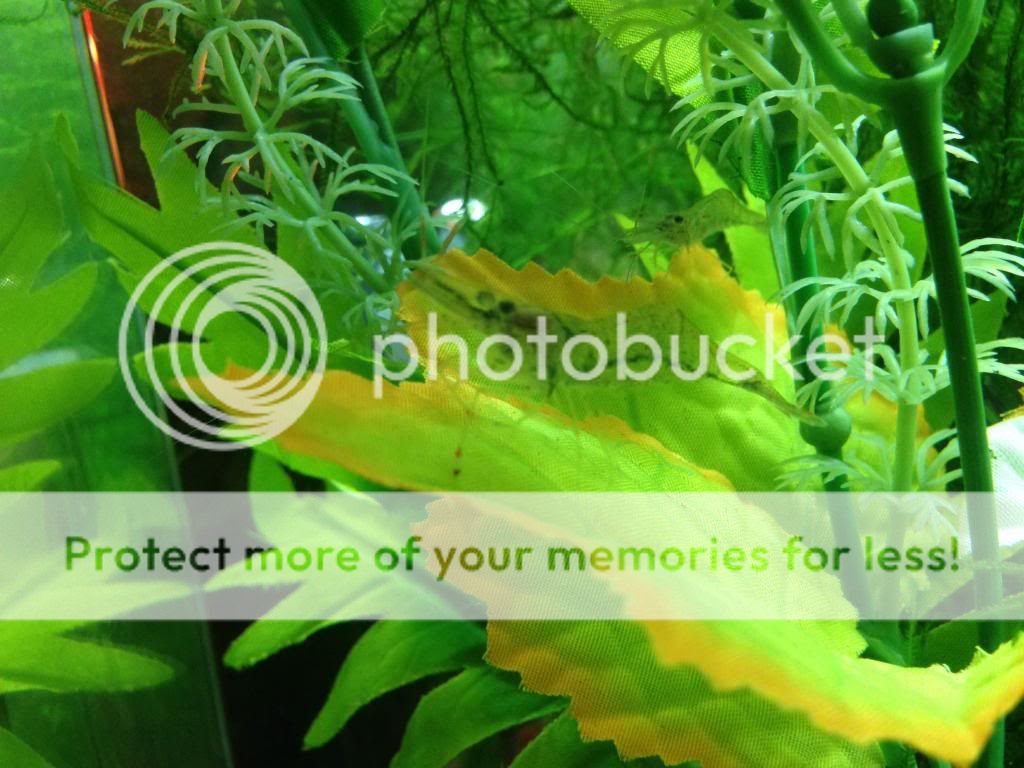 Currently I have 4 small marimo moss balls (each about the size of a marble) and lots of java moss. I have a few silk plants with broad leaves as well. The substrate is river stones and smaller (pebble size) river stones. The temp is kept at about 80 F and the pH is at about 7.6. There is NO algae in the tank.