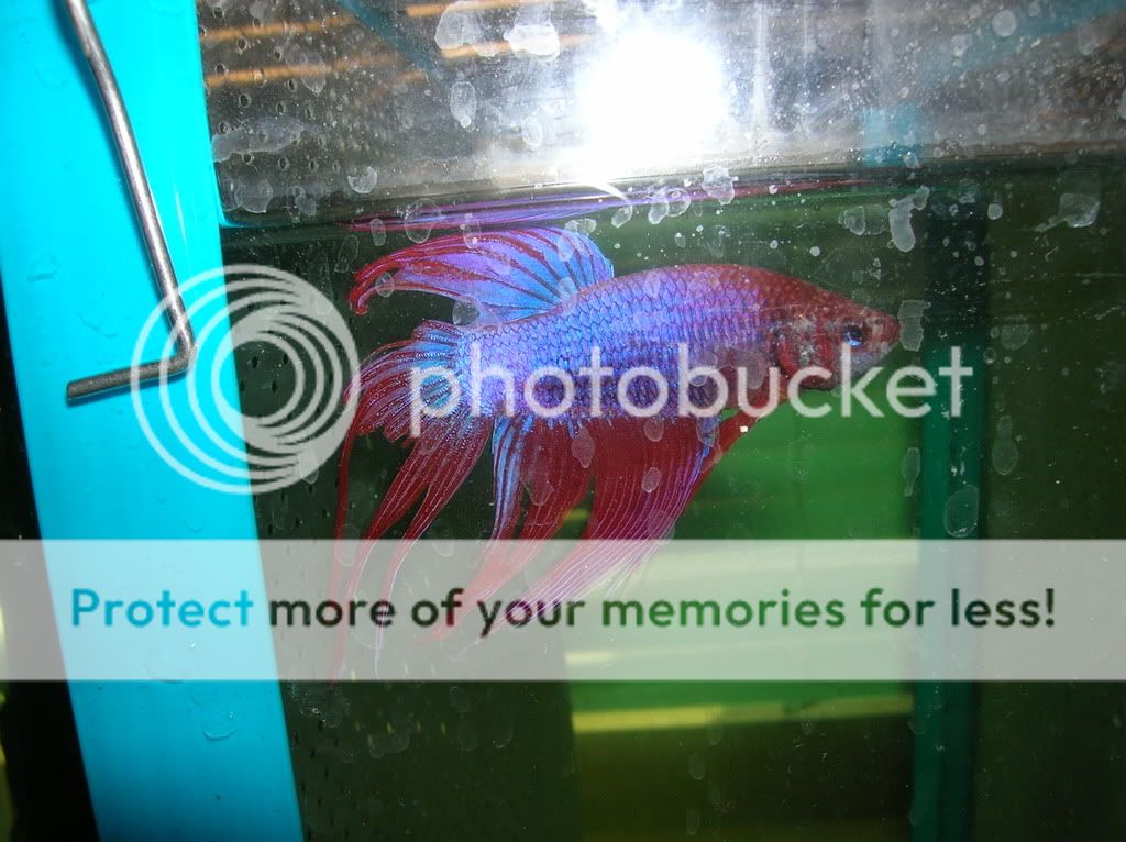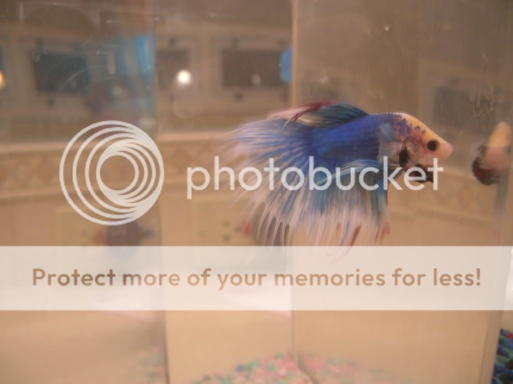 This is Zane (bad pic sorry) he was the other betta in the vase with crispin. Besides his tail damage hes healthy and active and is currently living with a friend of mine down the road (got him for free)