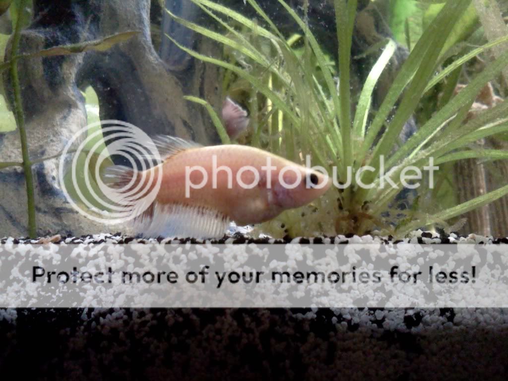 Anyways, the four girls in the tank have established their pecking order and all is doing well. Except my co-alpha (I say this because she has run of the tank, unless it's feeding time when the female who claimed a hollow decoration realizes there is food)