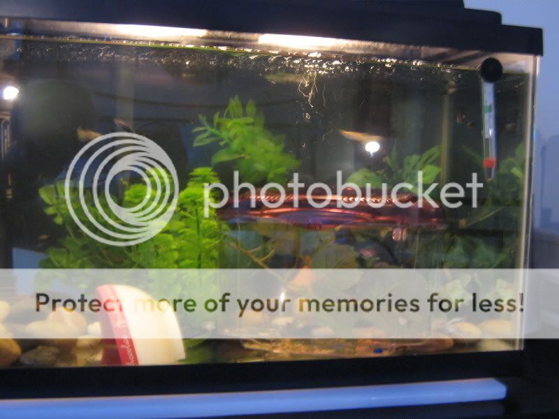 In the first picture, there is indeed half of a red bowl, i have been wanting to get rid of that for quite some time now...it's ugly and all--but my pleco lives in there, so i can't bear to tear it away from him! so that's out of the question to get rid of it