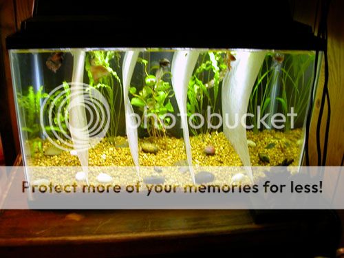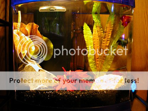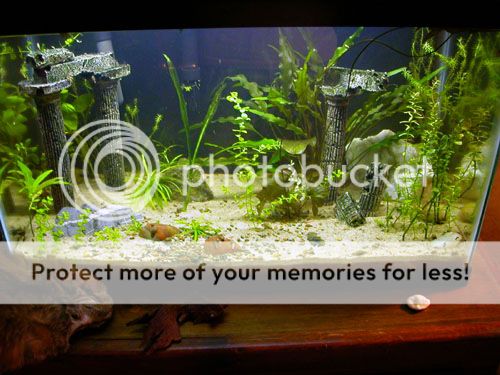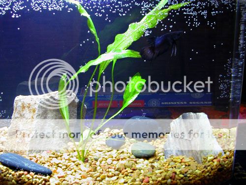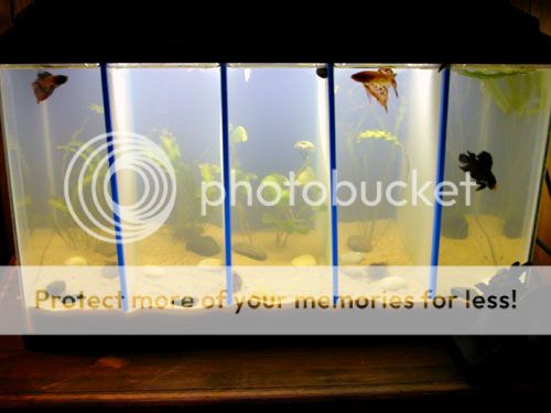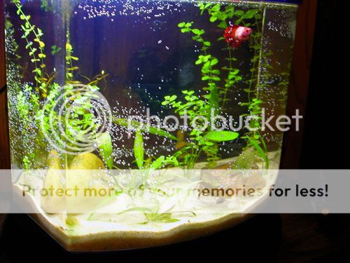I finally decided to switch my divided tank to sand and fix the dividers the other day since Valoel passed (he struggled with TB for a long time) and I thought it best to strip the tank and clean it thoroughly before putting a different fish in his old compartment. It was a lot of work, but it looks TONS better! There's not a single bit of sealant keeping those dividers in place, btw; they're held firmly by the sand and are cut to fit very snug so they can't be pushed over by little betta noses! I also set up a new 2.5 gallon for one of my new males and changed Valefor's tank from black river rock to black gravel.
