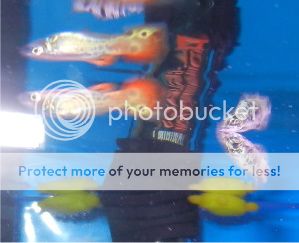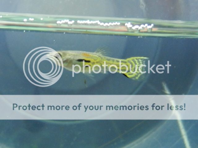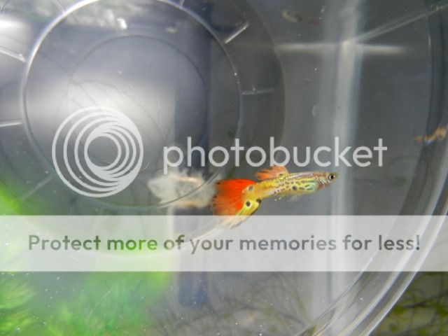 so my friend gave me a baby guppy waaaaay back before it had color. when he got color, he was the only one that was a 'snakeskin' and a 'tequila sunrise' guppy, all of hers were snakeskin. and so he was still little when he got his color