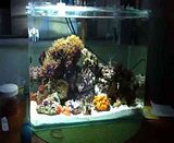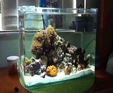 But after I put in the sun corals, I was noticing that I'd lose an awful lot of water. No evap, about 1/2" a day. I always have prepared SW, so I'd add more. It was a slow seep. When I started noticing water on the floor, I knew the tank had a leak. It wasn't the filter either, that's the first thing I checked. So, rather than wait for a huge disaster, I decided to search for an upgrade. I saw this tank at a LFS...