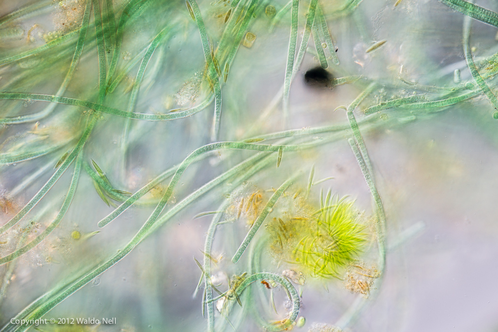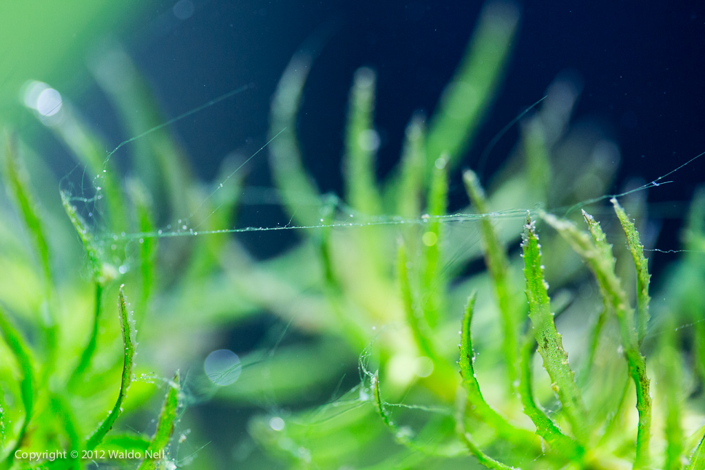 I have just discovered a filamentous algae growing between the leaves of some of the plants. Here is a photo of the algae as can be seen with the naked eye:
