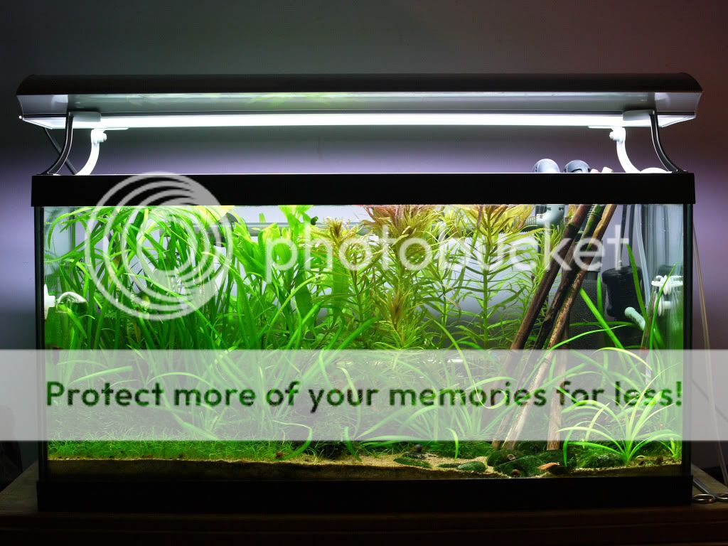 Additional info: This is the most powerful luminaire I think you could easily get away with on a plated tank without injecting CO2. I used it both with and without CO2 and was easily able to grow apparently "high light"/"difficult" plants like Rotala macaranda and Limnophila aromatica. With a change of bulbs it would work well to grow lots of different corals in a marine tank too.