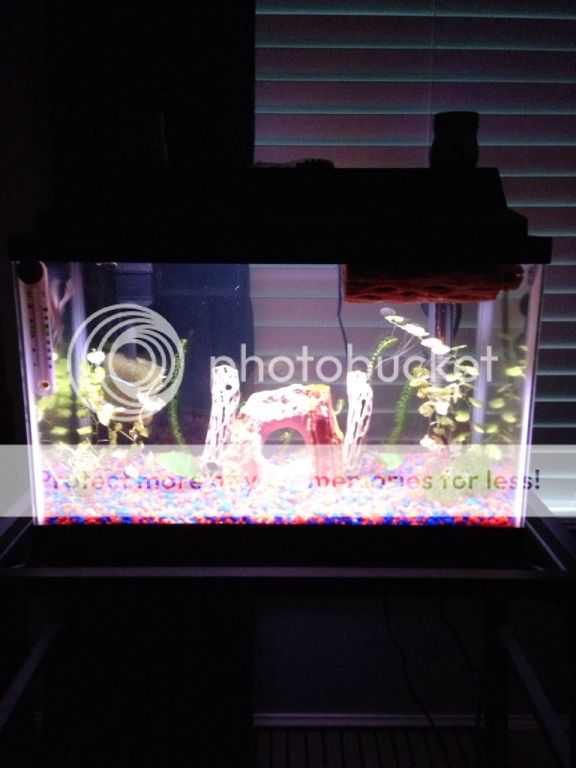 My little pleco is out on the glass more often, probably because he's hungry.I'v tried all sorts of ways to feed the poor fella his algae wafers but the rest of them are all over them, even at night and he scoots off to hide.