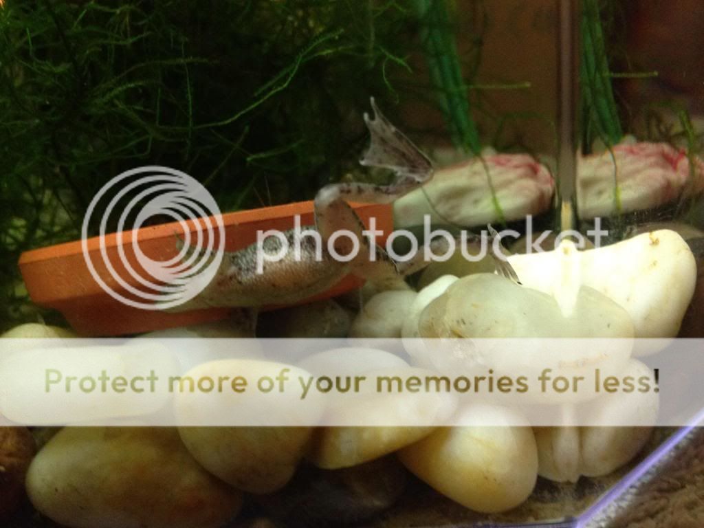 Pip is behaving normally - active, and eating. I haven't changed the food (zoomed frog and tadpole micro pellets). The only "new" thing is the shrimp and some additional java moss that I added over 1 week ago.
