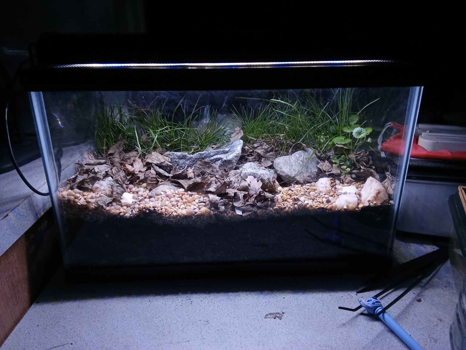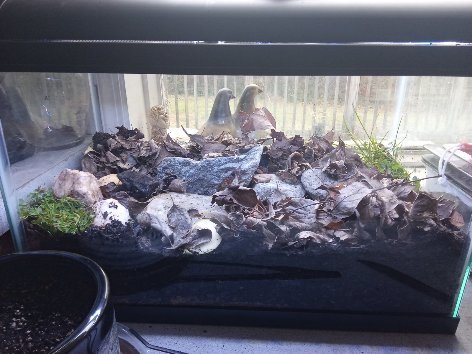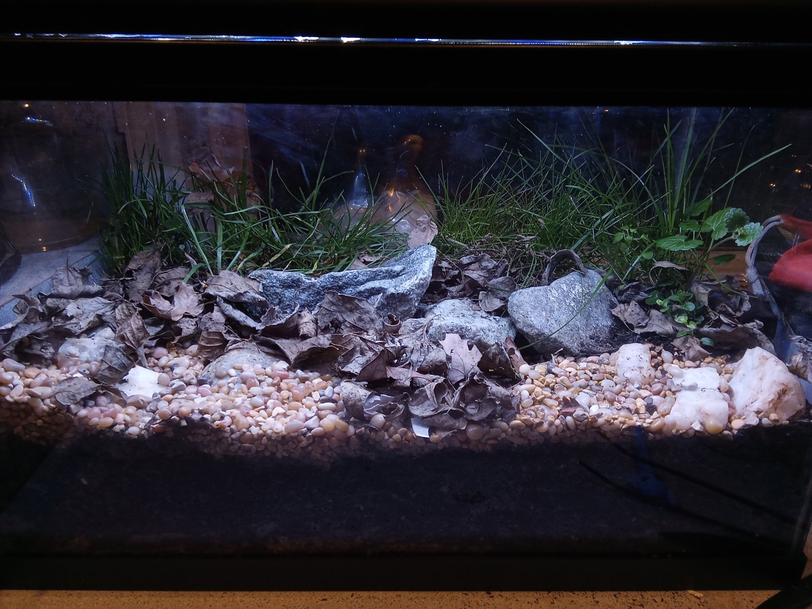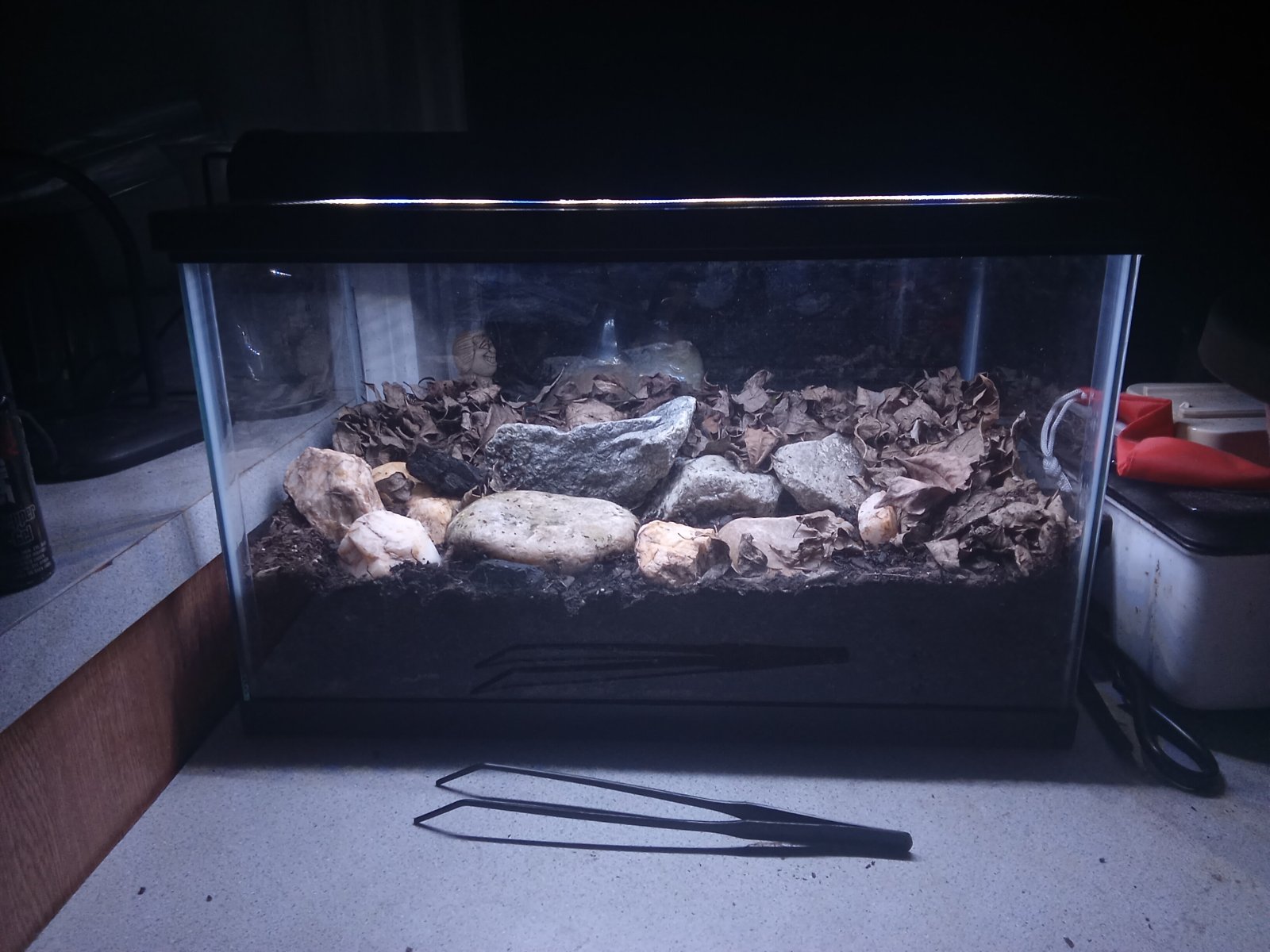Started this terrarium last Thursday night and added hardscape. Don't plan on adding creatures until spring. Think it'll be just rocks and grass but I'm not sure yet.