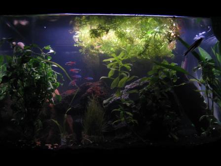 This is my 10g tank...taken at night.... really well planted, some neons, a few catfish, not much else