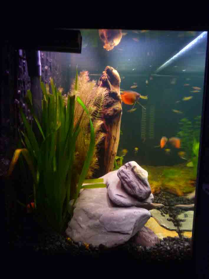 My tank had not ben set up that long and i soon realised that i had just made do. I had used the gravel that came with it didnt use a background and had used a few stones and things i had from other tank.