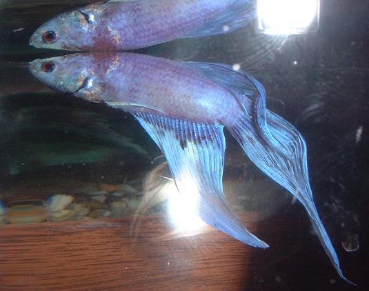 And this is my new pride and joy. He's purple!!! PURPLE! You can't really tell in the picture but he's like straight out of the crayon box purple. Bright. My mom asked me if he was dyed because it's so bright. He's got a messy butterfly pattern with a couple purple splotches on his tail and fins. He's not very active, hopefully that will change.