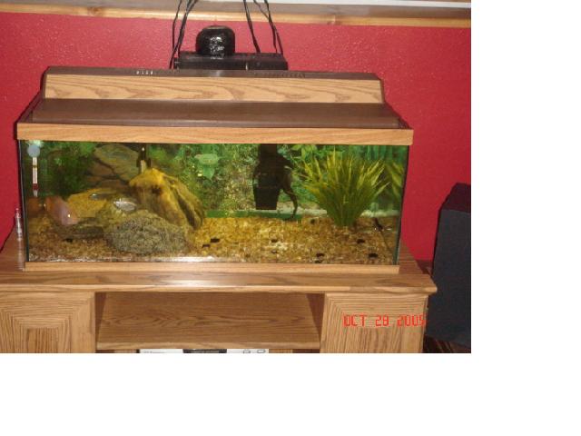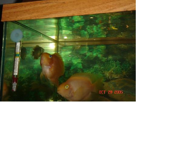 Yeah, my parents bought me a few guppies one time.. they were gone the next day. I'm not sure if the gourami was killed by another fish.. it was acting kinda weird for a few days and then i just found it laying dead inbetween the rocks. Didn't look like it was chewed on though. Yeah, I know they will outgrow my 20g. The store in town doesn't take back any of its animals. And if they did I'm not sure if I'd want to take these guys back. I really like them. I want to get a job this summer. So if my parents let me I will and then I'll save up for a 55 gallon set up and put them in there.