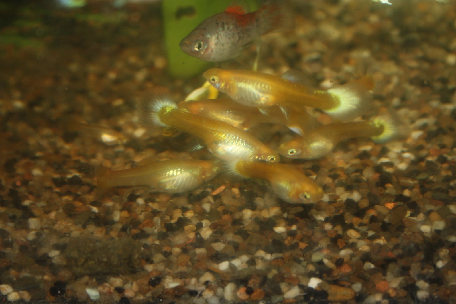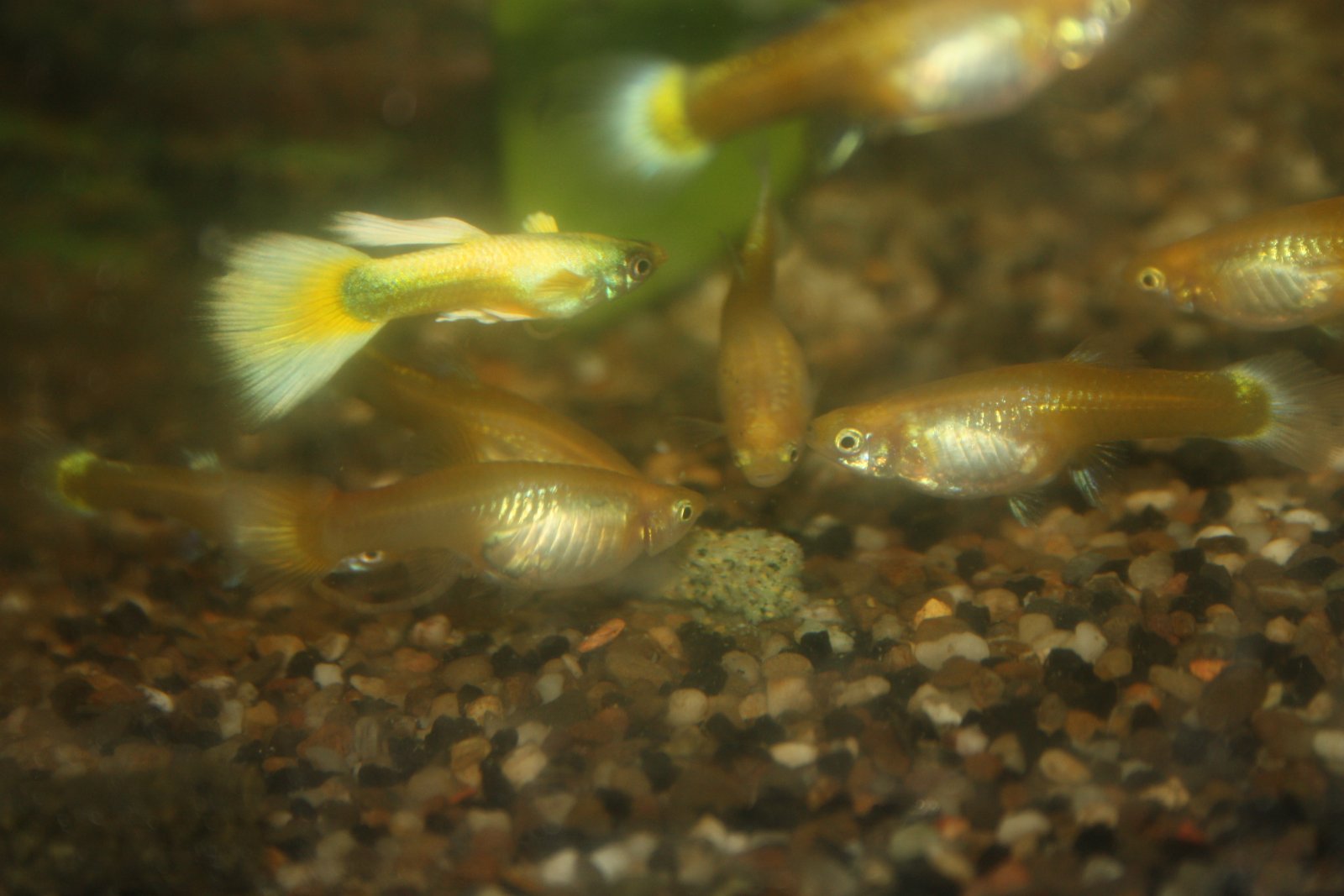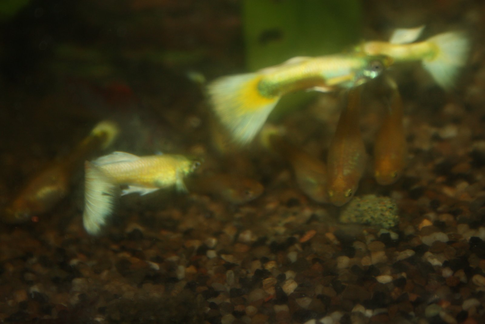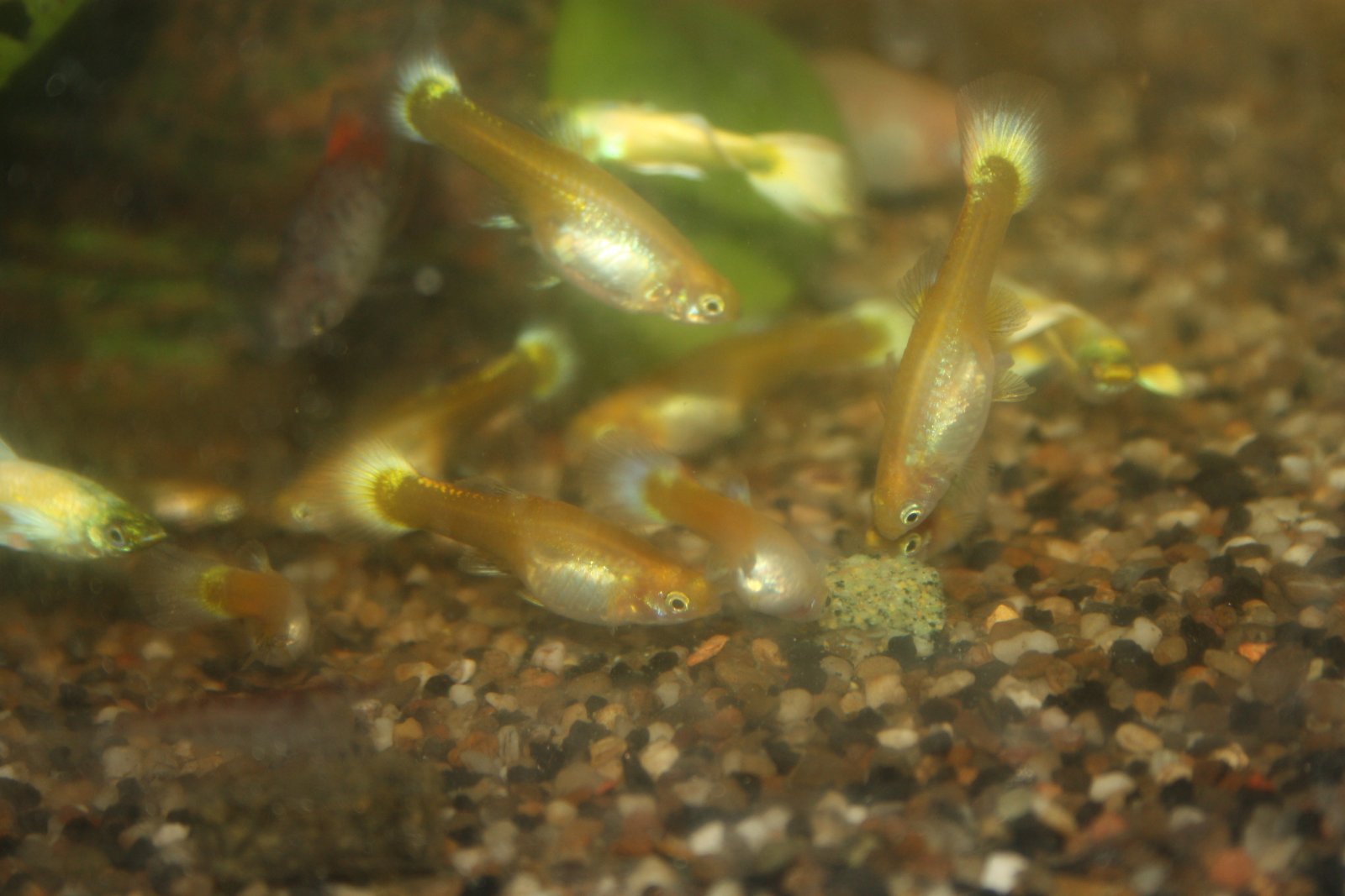 Well, there are multiple gold strains in guppies. I've got two different gold strains overhere. The strain you see overhere came from a Thailand import.