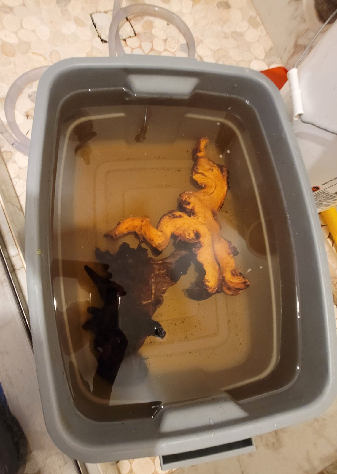 We like to soak our driftwood in a pail a few days to help remove dirt/and similar on the drift wood before using: