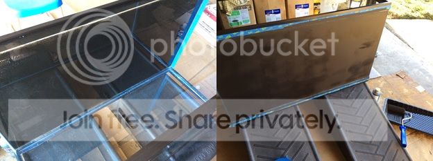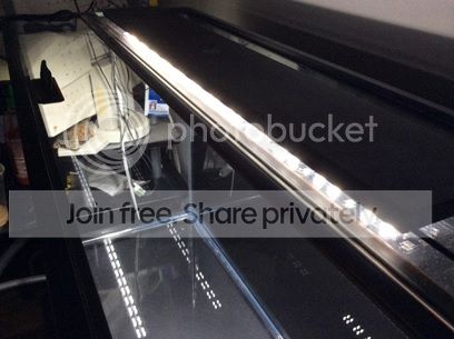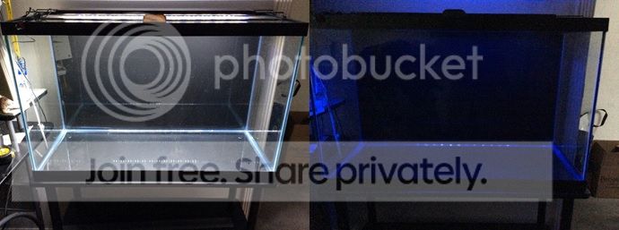 Here is the empty tank with the lights at full blast. All 6500K whites and RBG LEDs are on is on the left, moonlight is on the right. Unfortunately, the different lighting programs (sunset/sunrise, cloudy days, etc.) could not be programed to a timer throughout the day. It would have been an awesome feature to have the lights dim up and down on a timer. Too bad though.