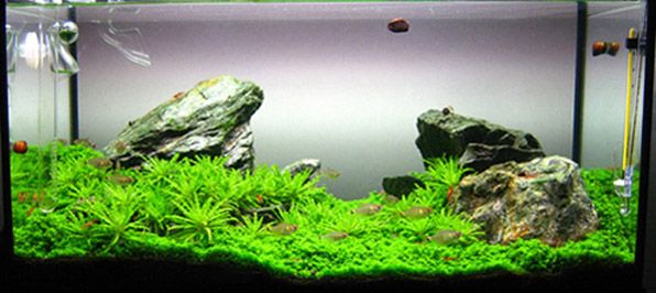 60 x 30 x30cm (14 gallon)Iwagumi I set up late August this year. Soil is ADA Aquasoil Amazonia. Rocks are Welsh blue mountain & the plants are HC & Pogostemon helferi. Fish are Hemigrammus ocellifer along with Ruby nerites, river nerites & Cherry shrimp. EI method of fertilizing, 5ml of Easy Carbo per day as well as pressurized CO2 @ 3 bubbles per second. Filtration via Fluval 405 & 4 x 24W lighting for 7 hours per day.