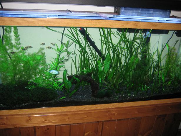 middle tank, vals are growing nice and green, the power head is helping a lot, see how it even makes the val cross the tank