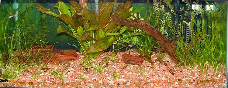 Some of you might remember that I was discouraged with my plants in my 40 gallon when the discus lived there. The increased temp and waste of the fish was after many months taking it's toll on the plants. I was not able to keep up with the tank with twice a week gravel vac and water changes. I made the discus there own bare bottom tank and went about reviving the 40 gallon tank. This tank needs a lot of growing in with the plants since I through out a lot of bad looking plants.