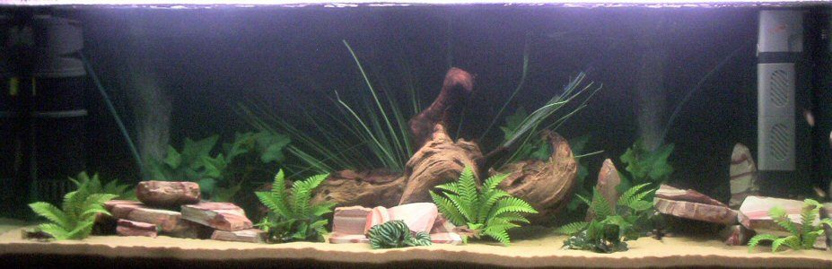 notice new layout... do u think it looks too much??? i mean... iv got roughly 20 odd peices of rock in there an i dunno if it looks too much or owt... but i only put extra in because of how many bottom feeders/hiding fish iv got lol