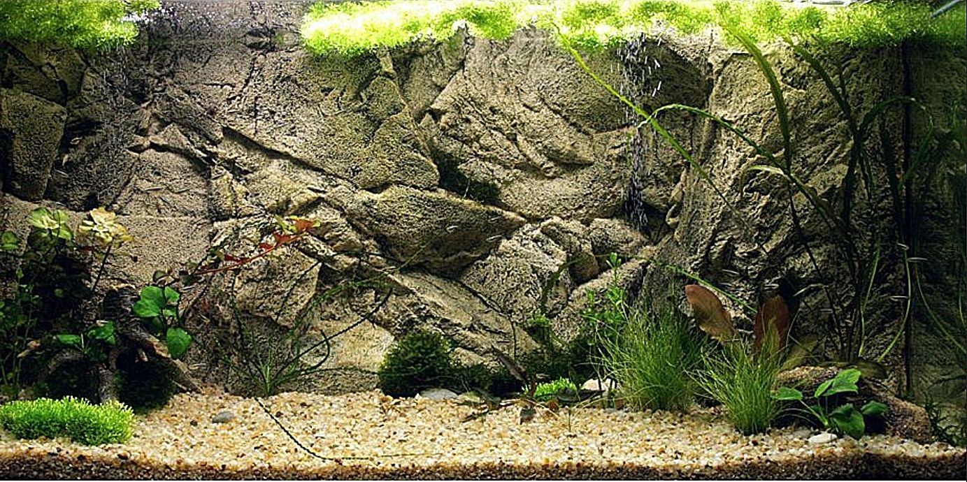 A 3D background would make it look like the tank is located near a shore, and a black background would make it seem that it is farther out in the lake