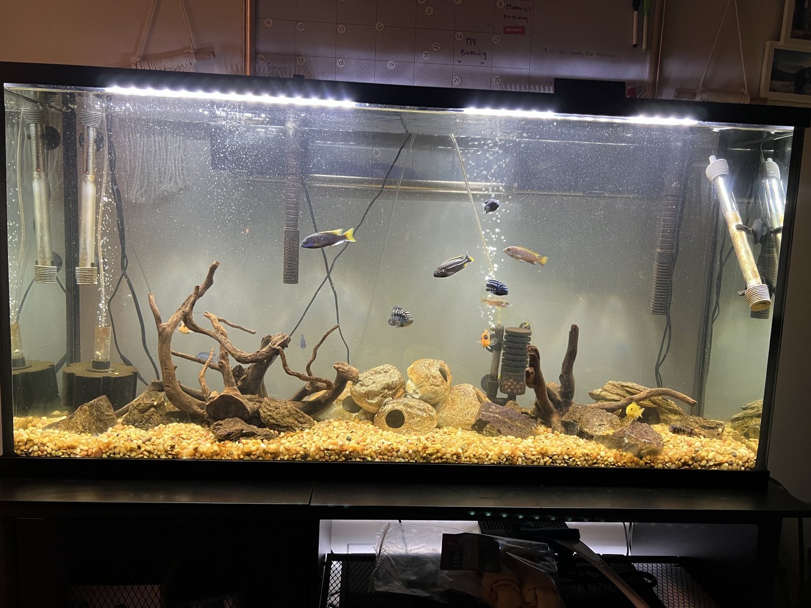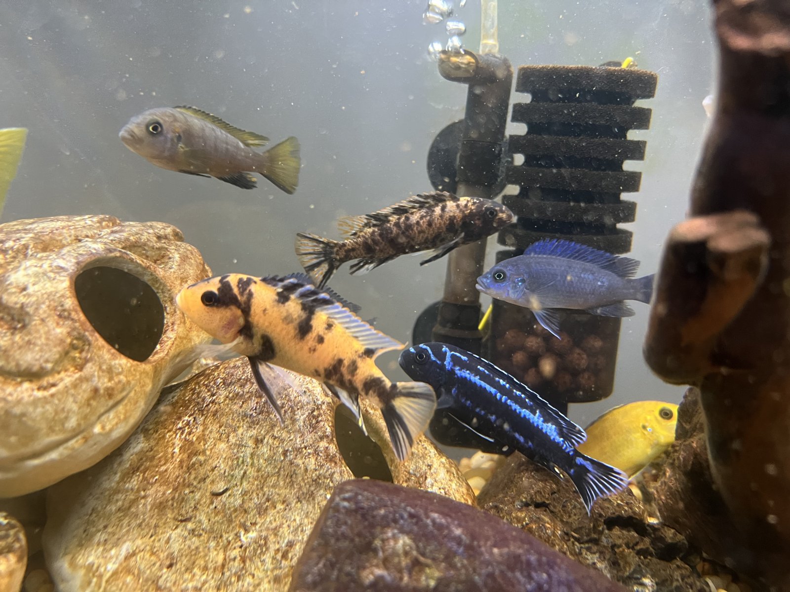 Haven’t posted for a little bit. Just been busy with traveling for work and such. But for those who remember when I started my mbuna cichlid tank a few months ago , all is well!