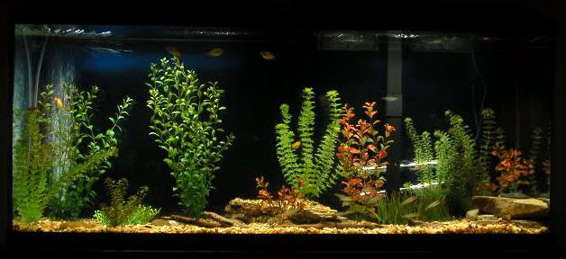 I've got a 55 gal fresh water tank I recently (Nov 13th) converted to live plants. The conversion was quite an ordeal... in the weeks prior, I upgraded the lights from the standard "aquarium kit lights" (2 X 20 watts, normal output fluorescent) to 185 watts of compact fluorscent near blinding brilliance. B) I also changed the substrate from an inch or so of large size gravel to 3 inch (in front)/5 inch(in back) substrate of flourite/Turface(profile) mix. Knew I was going to need CO2 with that much light so did the DIY thing with 2 3-liter bottles. Didn't want to just bubble the CO2 into the tank and I don't currently have a cannister filter so I researched on the web and rigged up a "reactor" using a submersible pump and a gravel vac.