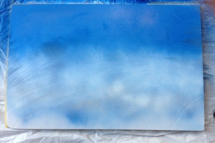 Stand: diy cinderblock stand with boards and 2x4s for support. Draped with patterned sheet metal