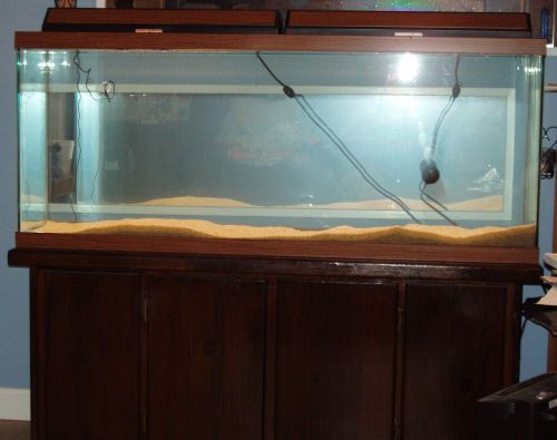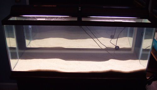 I bought this tank two weeks ago but I was only able to get it set up yesterday but so far this is what I've got. I'm planning to add my Cories, Clowns, Neons, Kuhlis and a Shark (if he behaves) to it as well as a few Gold BN's. All the fish save the bristlenoses are already in a pair of 30g's and a 10g so if things don't work out for the Cories, Shark or Kuhlis, they have somewhere to go.