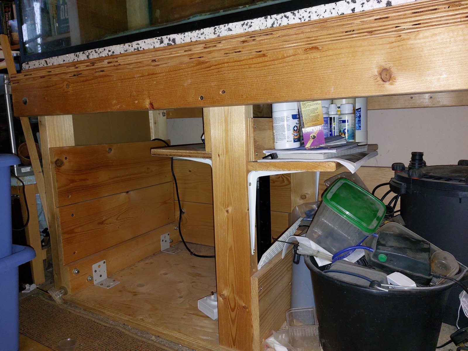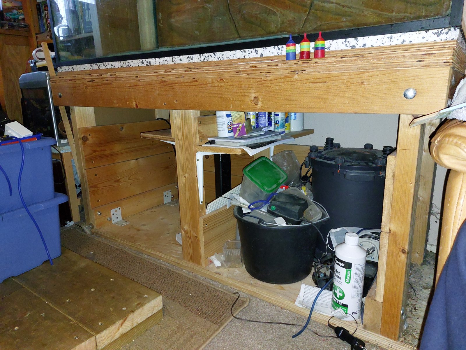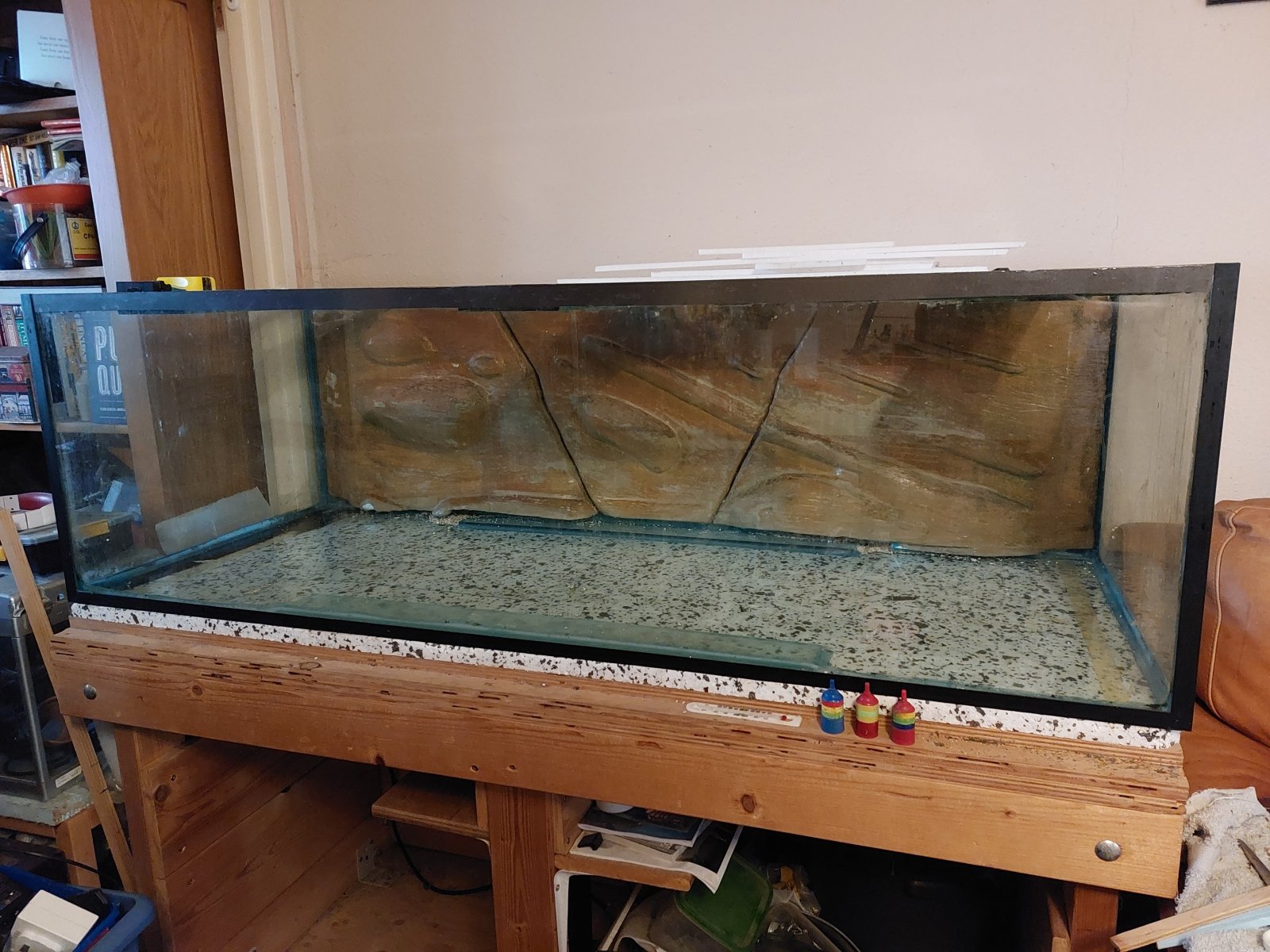 Tank 1 5ft x 2ft(w) x 18in(h), condition is OK, does not leak, Large custom built stand made from 2" x 4", 1.5" ply floor base, 2.25" + 1" polystyrene tank base.