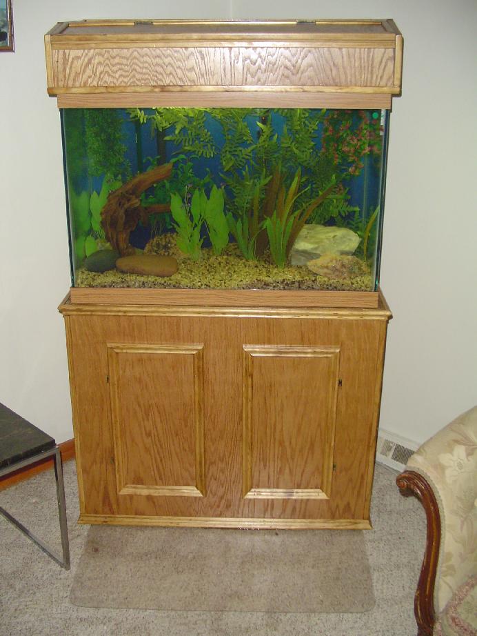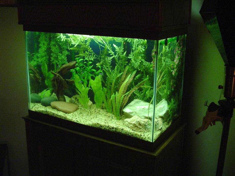 Sorry for not getting back sooner, had a busy day. The blue things are from the flash on my camera or something, new camera, need to figure out all the functions. It's a 65 gallon, 36x18x24. Just stocked it today with some angels, panda corys, and a few albino bristlenose plecs.