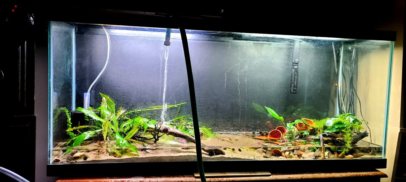 Changing out a substantial portion of the water for fresh water on a regular schedule is crucial to a healthy aquarium and healthy fish. Provided the parameters are reasonably close, the more water changed and the more often, the better. But few of us want to be doing water changes like some discus breeders do--90% of the tank water changed two or three times each day in fry tanks. The fact that fry grow faster and develop better health in such conditions is absolute proof there is clearly a benefit in water changes.