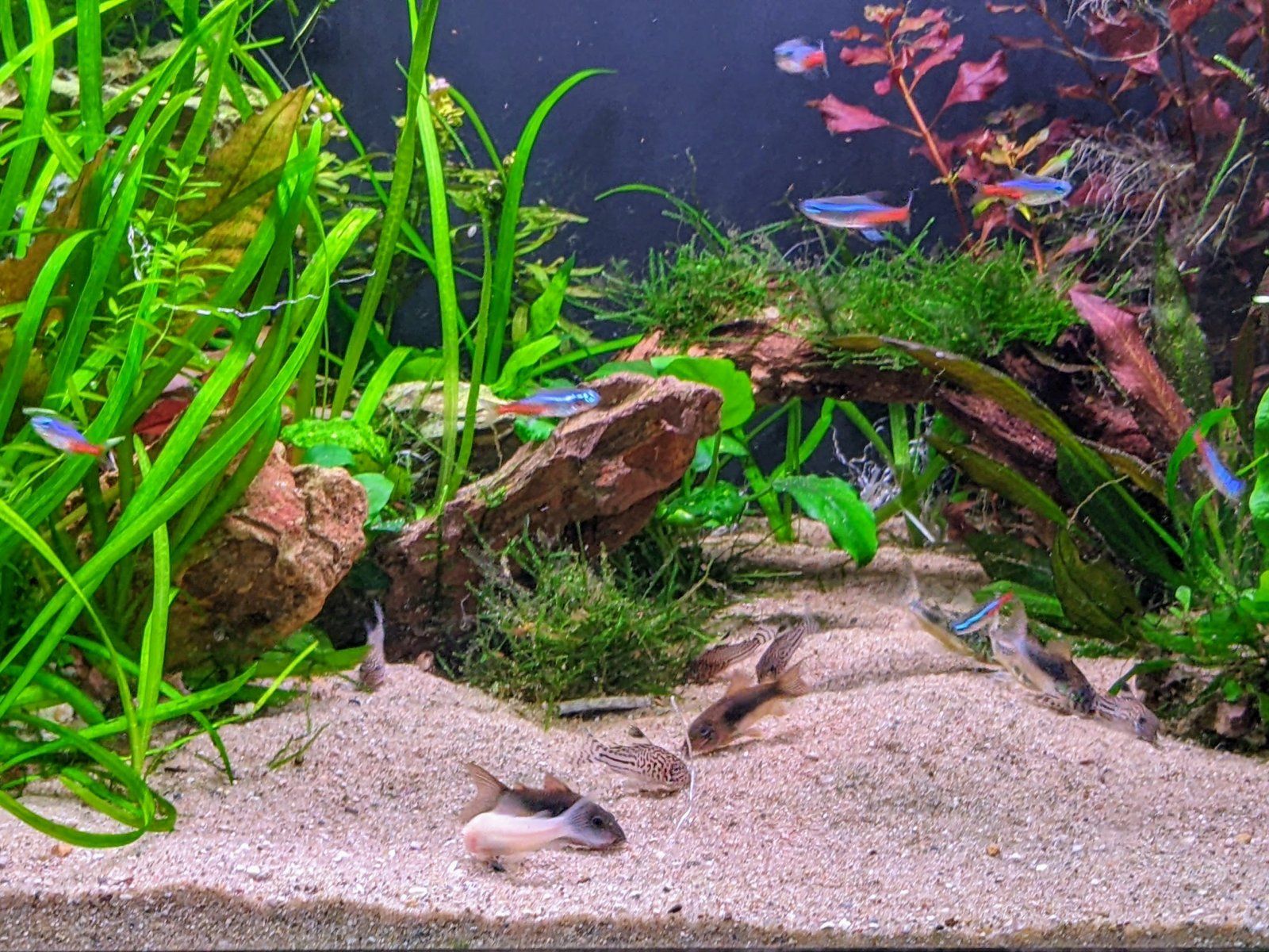 Currently dealing with algae in the plants. Pretty sure I have too much light and not enough CO2 (none). I'll be addressing that soon.