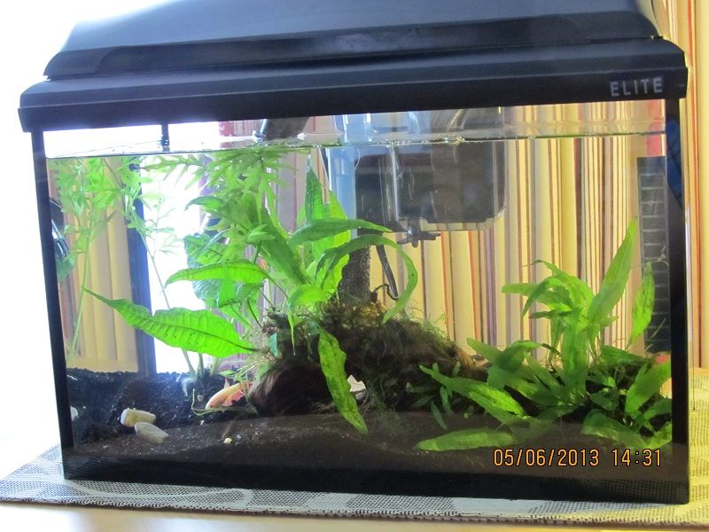 We have a little Betta in a 5 gallon Elite tank, which we bought second hand. The plan is to set up this Betta with a more interesting tank in my husbands computer room, once he is finished renovating it. (He's a Star Trek and Firefly fan)