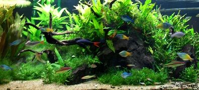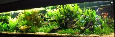 Here are some pictures of my planted rainbowfish tank. It has been running since Aug 2008. The aquarium flora has evolved somewhat partly thanks to its inhabitants; some of the Rainbows and Denisoni barbs got rather partial to hair grass and Blyxa so that i no longer have a nice lawn. The tank is lit by T5s and Leds, it has 4 external filters two of which supp;y co2 via x2 5kg canisters.
