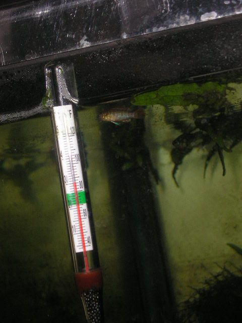 As some of you may know, I got a Scarlet badis as a bonus with my ctenopomas, this is the best shot we could get. The thermometer is average sized, not humongous