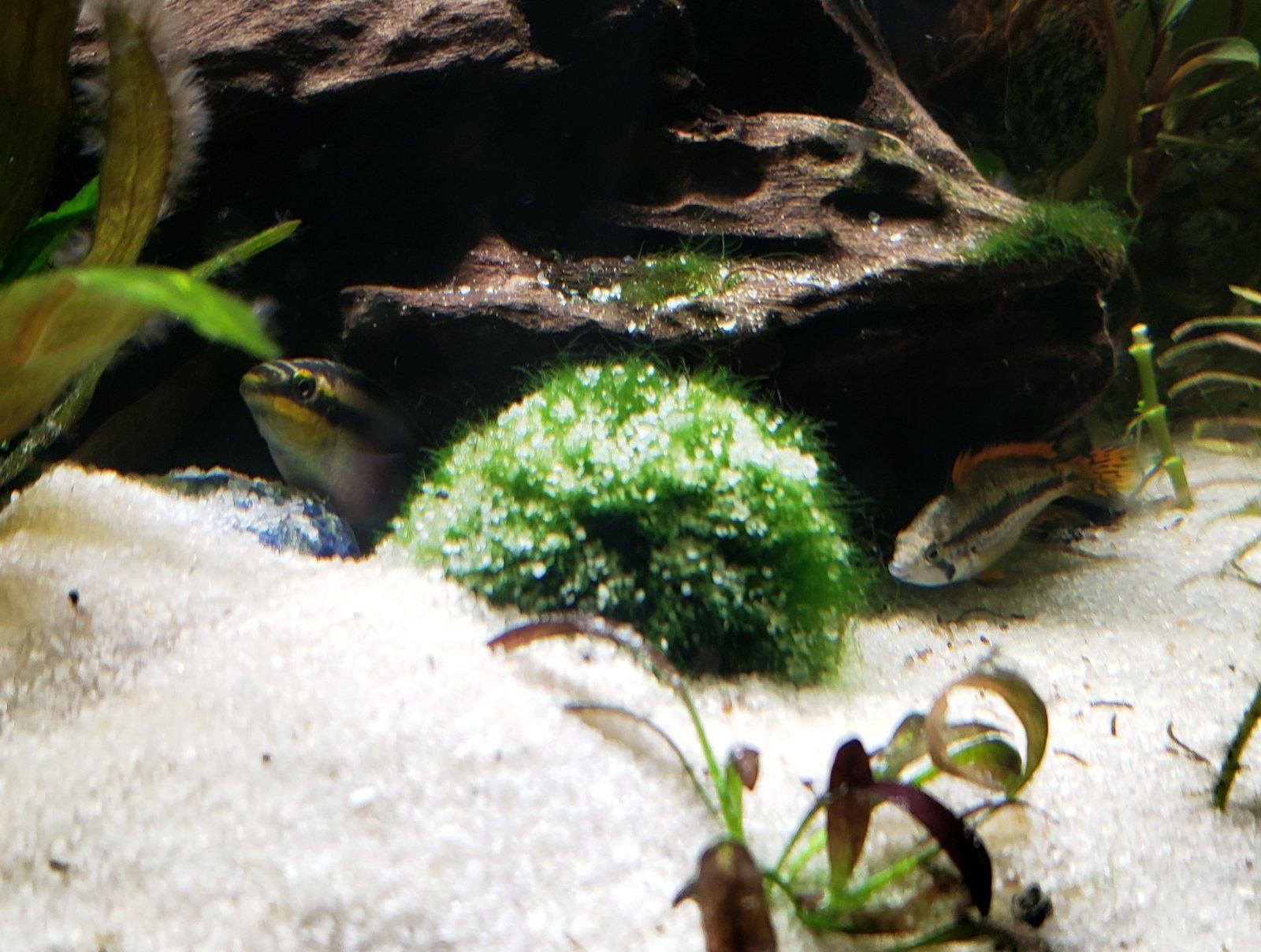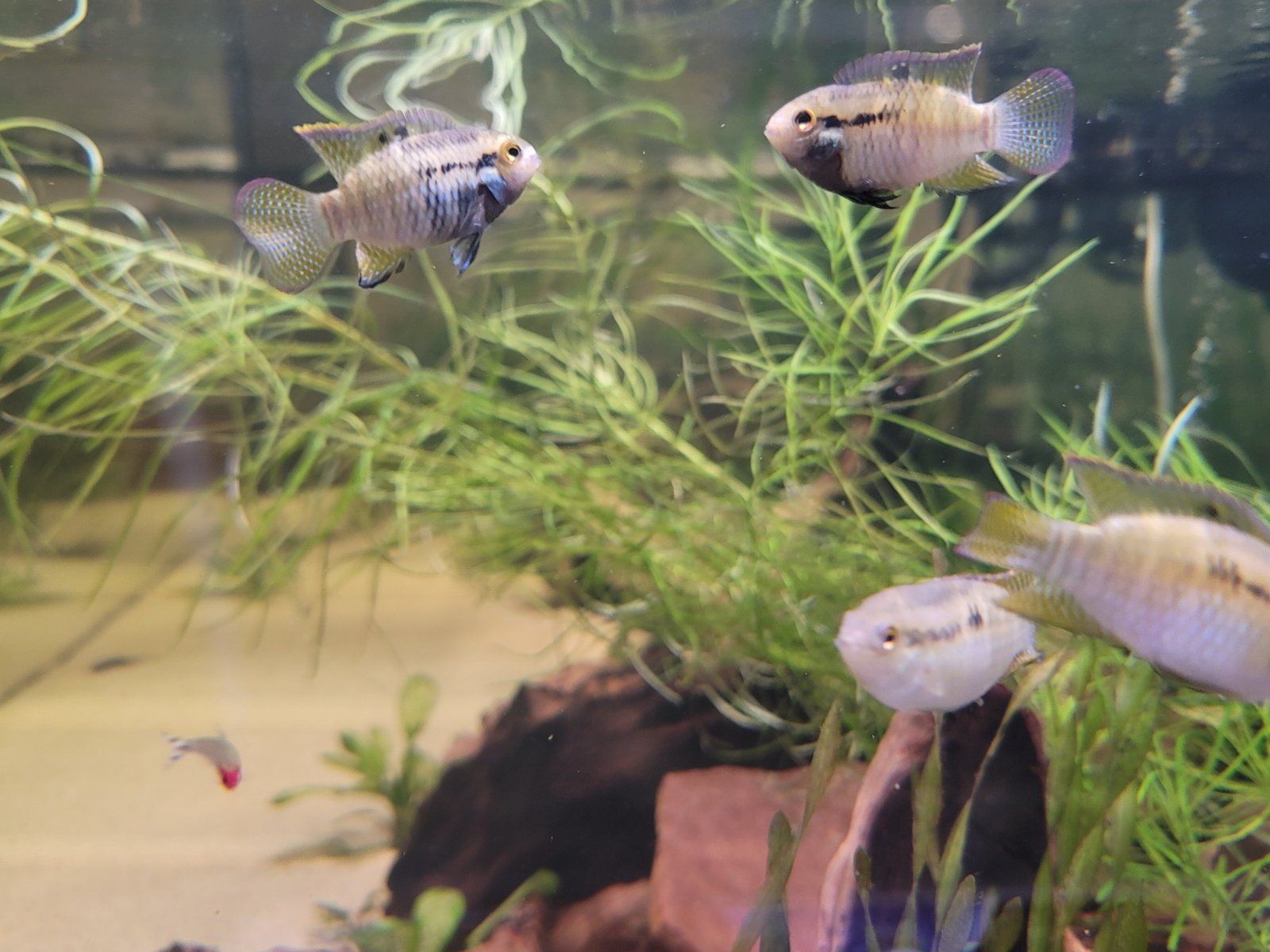 Thank you. No aggression with the guppies?Just the male and female; tank mates were mostly guppies. If the tank is shallow and has lots of floor space you might be ok with 2 males and several females but you have to scape it correctly to provide each male and female hiding places and territory boundaries. Borelli are one of the few species of apistogramma that can do ok in moderately medium water (tds 150 is ok for tank raised individual); many species of apistogramma require true blackwater if you want to breed them; others will do ok in slightly harder water. Tank raised sample can live in harder water but will not be able to breed.