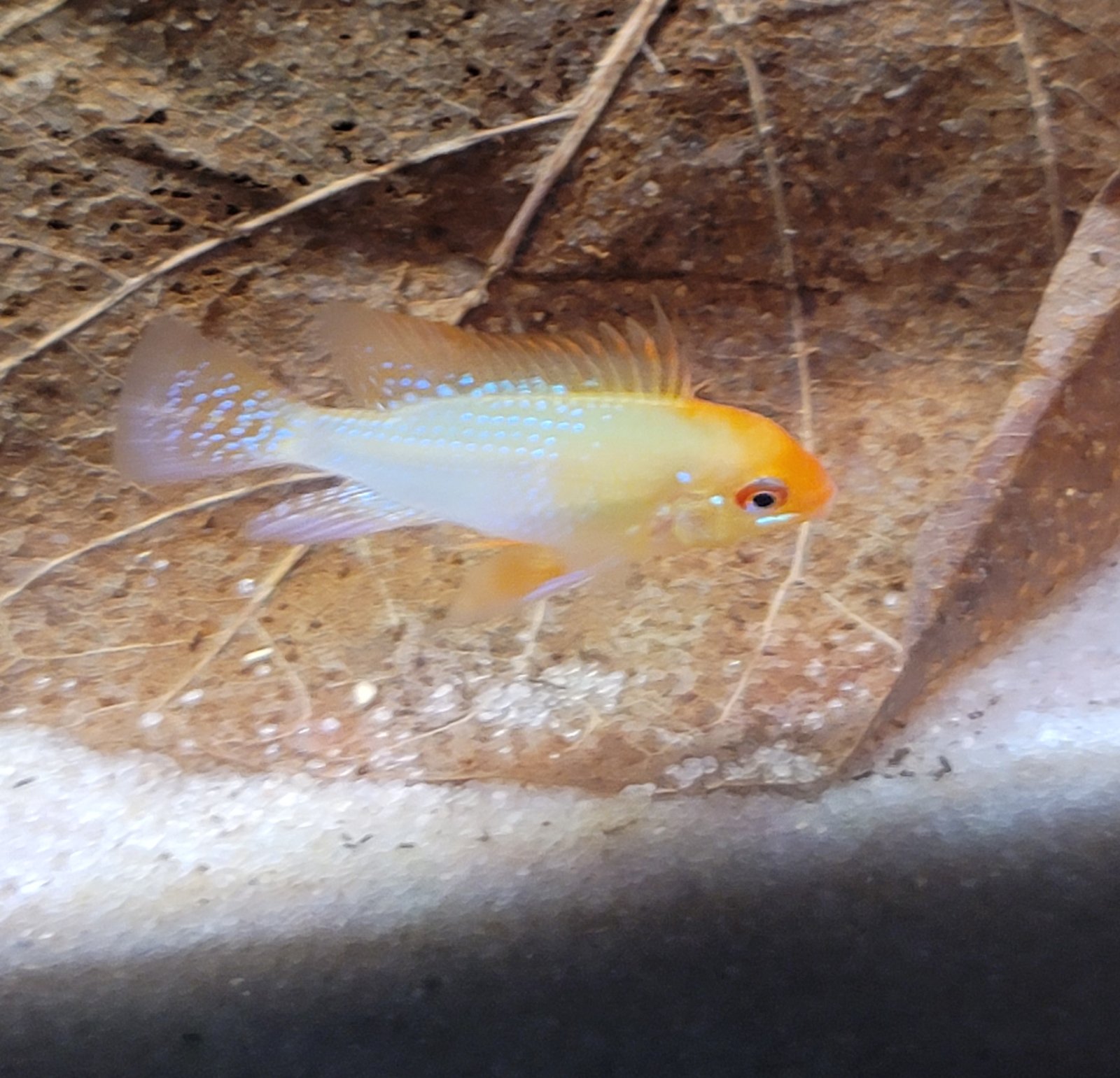 Interesting. The species is polychromatic and there is tremendous variation color-wise among N. marginatus populations. Their range is enormous, from the Guiana Shield countries in the north through the entire Amazonian Basin from Peru and Colombia in the west to the Brazilian Atlantic Coast in the east, and that has resulted in many color morphs. Rumor has it the splitters will soon break up the species and elevate numerous color morphs to individual species.No i could ask but not sure they really know - they were sold as 'gold' marginatus and they definitely have more colour than the non 'gold' sort - also i'm noticing an odd bluish patch just behind the dorsal fin on the top.