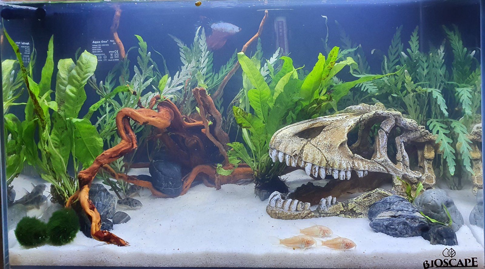 So I've got fresh wood, clean sand, new plants, awesome fake dino skull I've always wanted, and a new filter (cycled media from another established tank). Fingers crossed this fresh start leads to a long term healthy aquarium!
