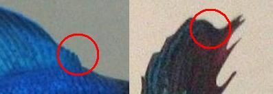 I've noticed the past couple weeks, Orion has developed a little kink at the end of his dorsal fin. His fins have quite noticeably grown longer since I first got him a few weeks ago, and about 10 days ago I noticed a slight little curve at the tip of his dorsal. It seems as that fin has had a bit more growth, it has progressed into a noticeable kink at the end. Is this a sign of something wrong? He seems completely healthy in every way, is extremely active and his fins show no other signs of anything wrong. He bubblenests daily, flares at everything, including his food before he eats it. Here is a pic of it (sorry it's a bit blurry, he doesn't stop moving long enough for the camera to get a good focus on him very often!)