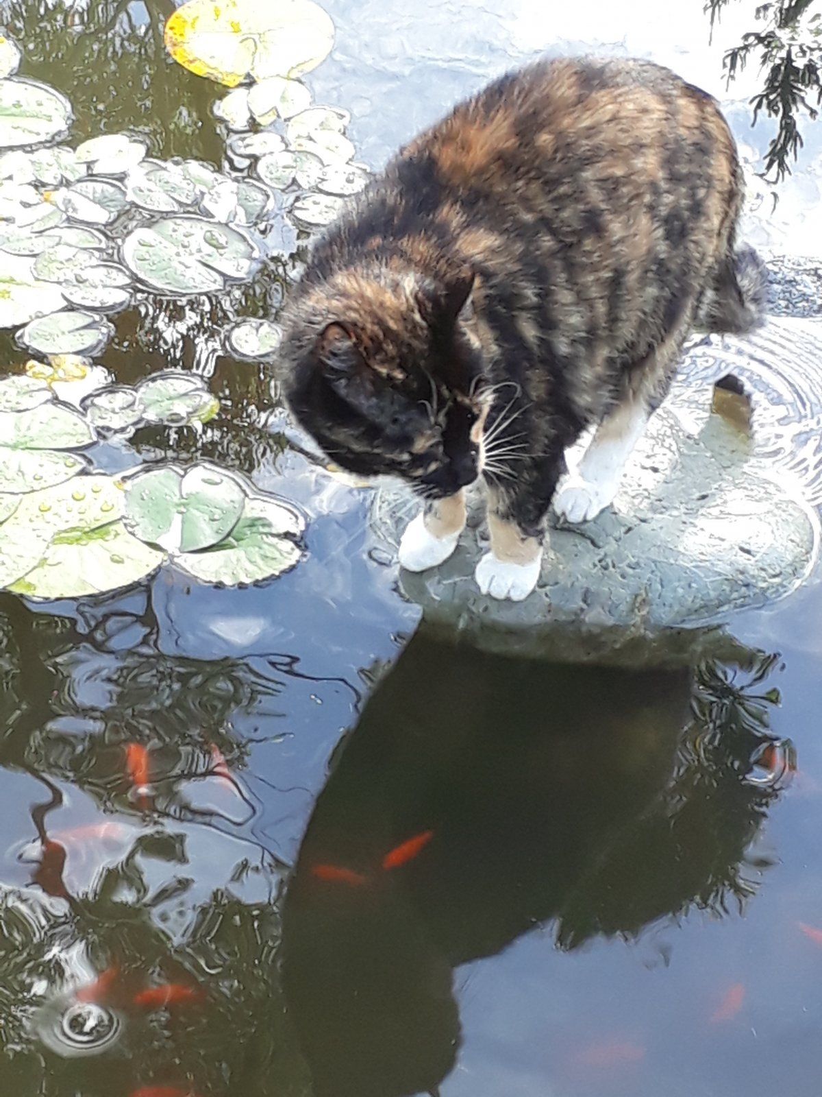 What a beauty. She has the same coloring as our Lady, only ours is long haired. She pretty much adopted us. She was our apartments local stray, but she decided that she wanted to live with us. So I took her to the vet, got her a good check up and shots and now she stays, for the most part, in our apartment. We have 2 other cats. Nico, a long haired domestic. He's about 12 years old. We found him abandoned as a tiny kitten. And 3 years ago we got Archer. He's a Bengal. A breeder friend of mine gave him to me because he was born with a birth defect. So I hand raised him from birth. Archer is just like a mini mountain lion or bobcat. He stalks everybody in the home at some point. And we get ambushed regularly. Lol!