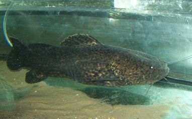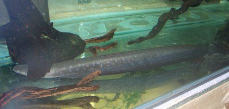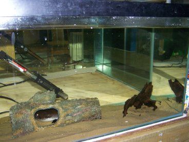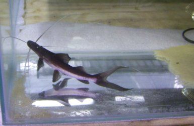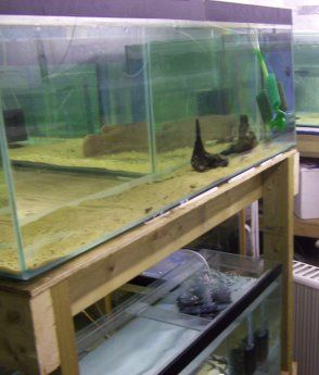 rack with a 80g tank which houses a Cephalosiluris folweleri and a 60 tank which houses a small spotted shovelnose and an even smaller south american lungfish