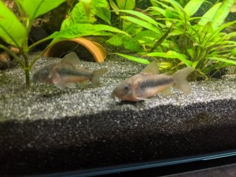 Ya got a very nice tank there, but I'm curious about the Bonsai - is that and actual bonsai tree or is it a drift wood trunk with java moss on top.?..I just never knew you can submerge a bonsai. If you can that makes for a great tank idea.More up to date pics. Everything is going really well. Cories are so fun to watch![]()