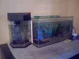 anyway this lil guy (called Coop, after Basketball and 'Coop'ed up in a jar) is in his new tank wich i bought immediatly after buying (no 'saving') him, it ended up costing me $80 (au), but well worth it, here are my two tanks now (coops on the left) (neo's and Otto's on right). Coop is looking awsome, very happy now eating and swimming around, he loves it
