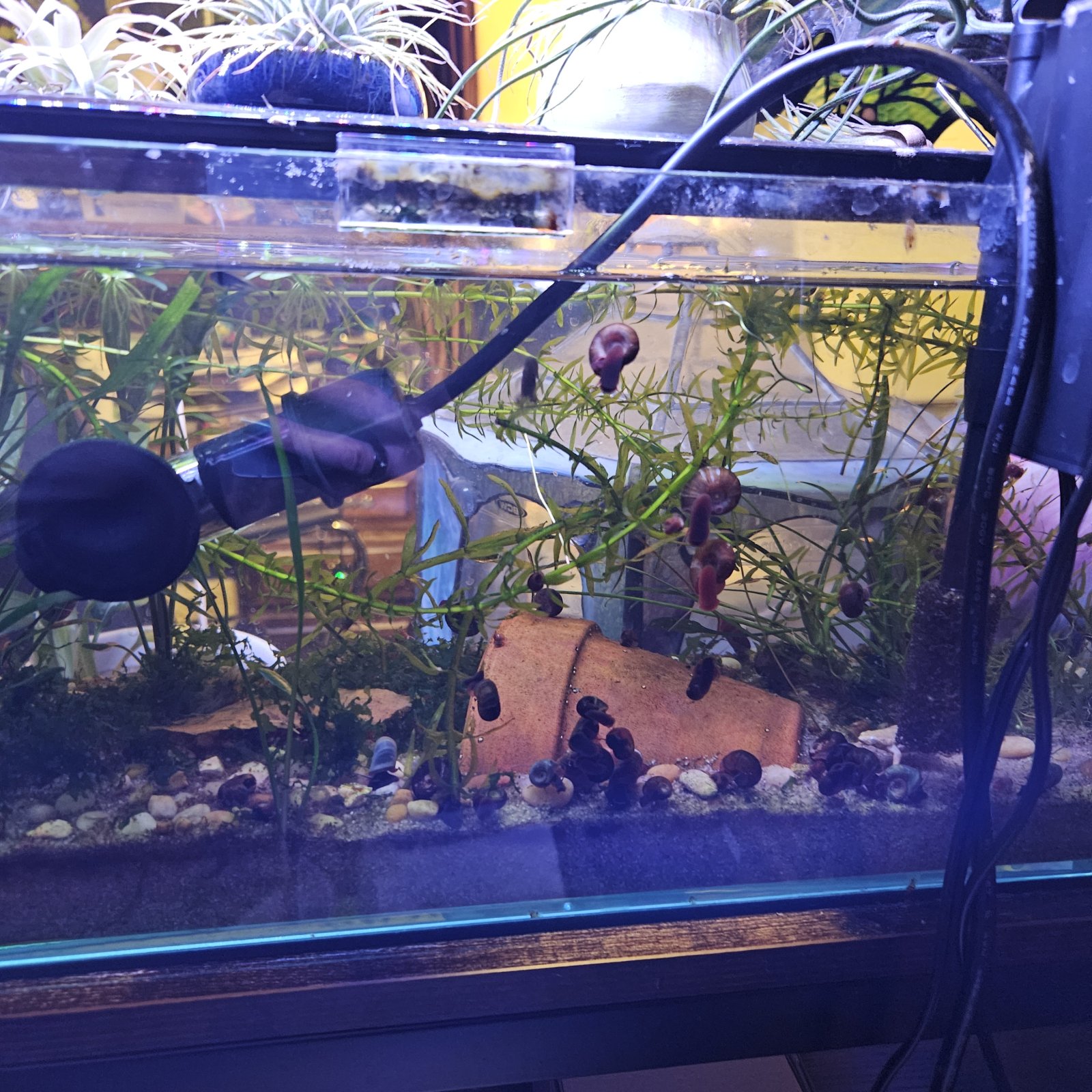 I do have frogbit floating, but I thin it out regularly, because the frogs like to float near the top at night, and just so they don't have to work too hard to find a place to get air.