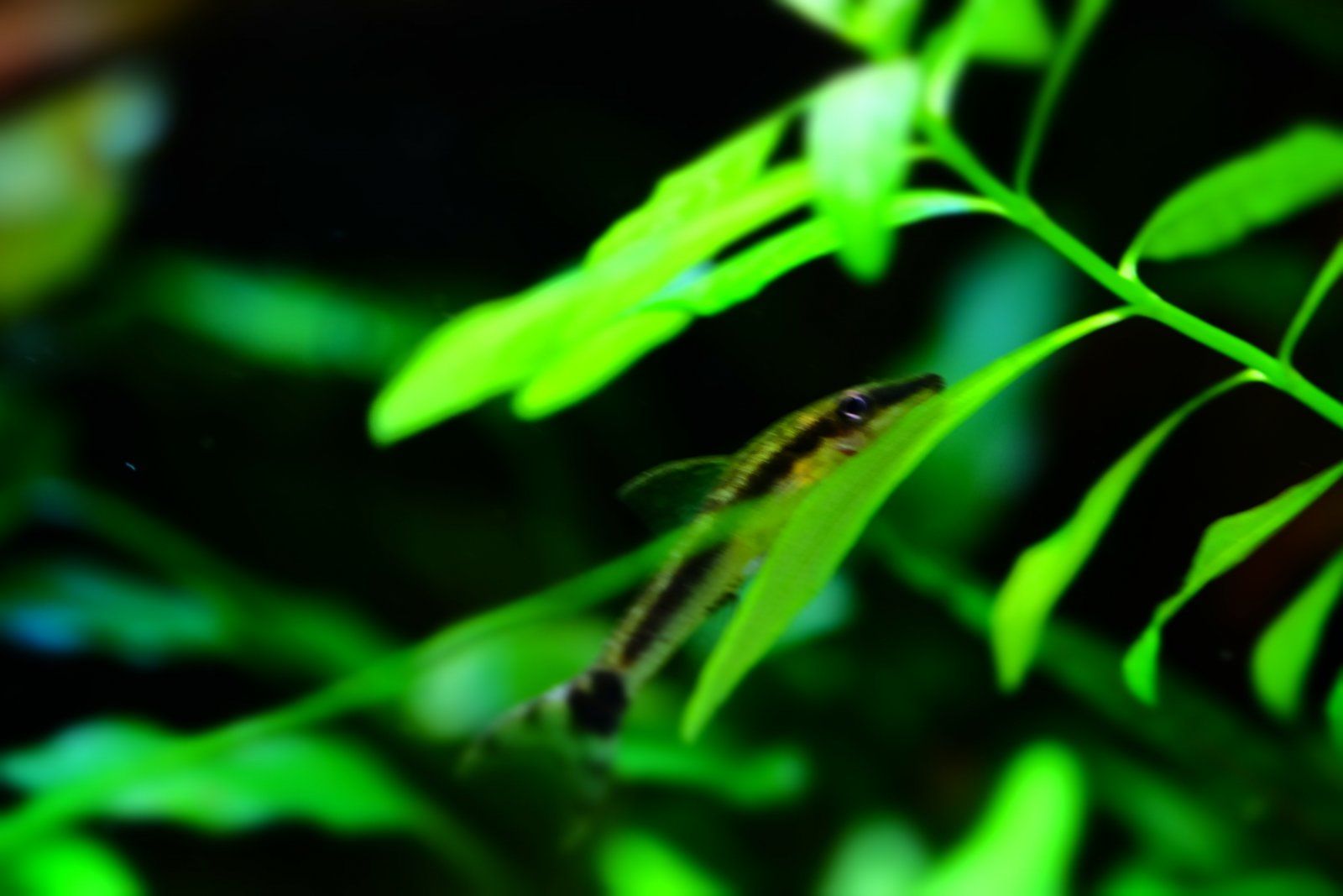 Fish: 2 cobalt dwarf gourami, 8 gold lyretail mollies, 2 otocinclus.
