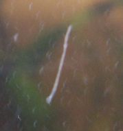It is official. I have the creepiest tank ever. It's a fishless cycling 10 gallon aquarium set at 82 degrees F with several live plants that must have transferred the snail eggs and creepy worms. Substrate is half gravel, half sand. My piece of driftwood is covered in white fungus and long brownish wisps of algae that are also clinging to the tank walls in clumps. The tank has been cycling for just about 2 weeks now. Ammonia is currently at 1 ppm.