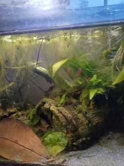 I've attached some pics of it today, this is after a 4 day blackout and treatment with Flourish Excel. It's still hanging on stubbornly. Because the tank has amphibians I'm not sure about trying other chemical treatments, I've heard Flourish isn't even that good for them so I've been trying to avoid dosing as much as possible.