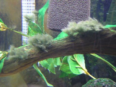 It wont do your fish any harm, it will eat some of the nitrates in your tank and some fish like picking the food off it, it looks like black brush algae, as you dont seem to have any real plants then you can just take out the wood and scrub it off. For more info there is a sticky in the planted forum on this site. In unplanted tanks I quite like that algae.