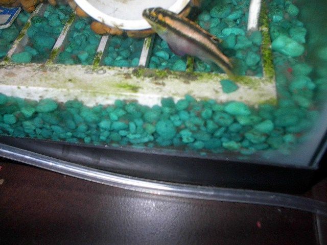 I havent cleaned the algae off because I thought the male had been acting strange. Sorry the pic isnt clear but those brown spots are krib fry He wouldnt let my hand in the tank with out attacking so I would hit a bit at it and quit so i wouldnt stress him out. Now I know why LOL